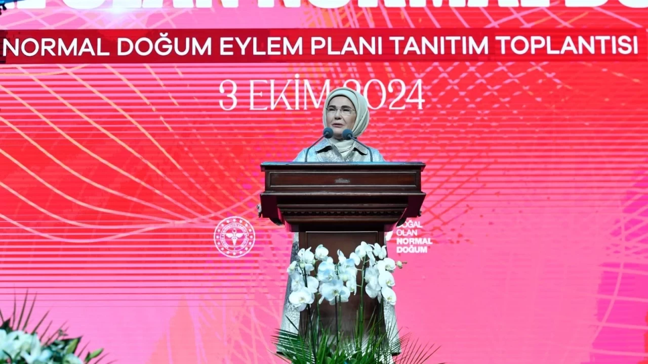 Emine Erdoğan, Beştepe Millet Kongre ve Kültür Merkezi'nde düzenlenen "Normal Doğum Eylem Planı Tanıtım Toplantısı"nda yaptığı konuşmada, sezaryen oranlarının Türkiye'de Dünya Sağlık Örgütü'nün belirlediği sınırların üzerinde olduğuna dikkat çekti. Sezaryen ameliyatının cerrahi bir operasyon olmasına rağmen, hızlı ve ağrısız bir doğum seçeneği olarak görüldüğünü belirterek, anne adaylarını normal doğuma teşvik etti. Erdoğan, normal doğumun anne ve bebek için faydalarına vurgu yaparak, hormonların doğal şekilde salgılandığı bu süreçte annelerin ve bebeklerin daha sağlıklı olduklarını ifade etti.
