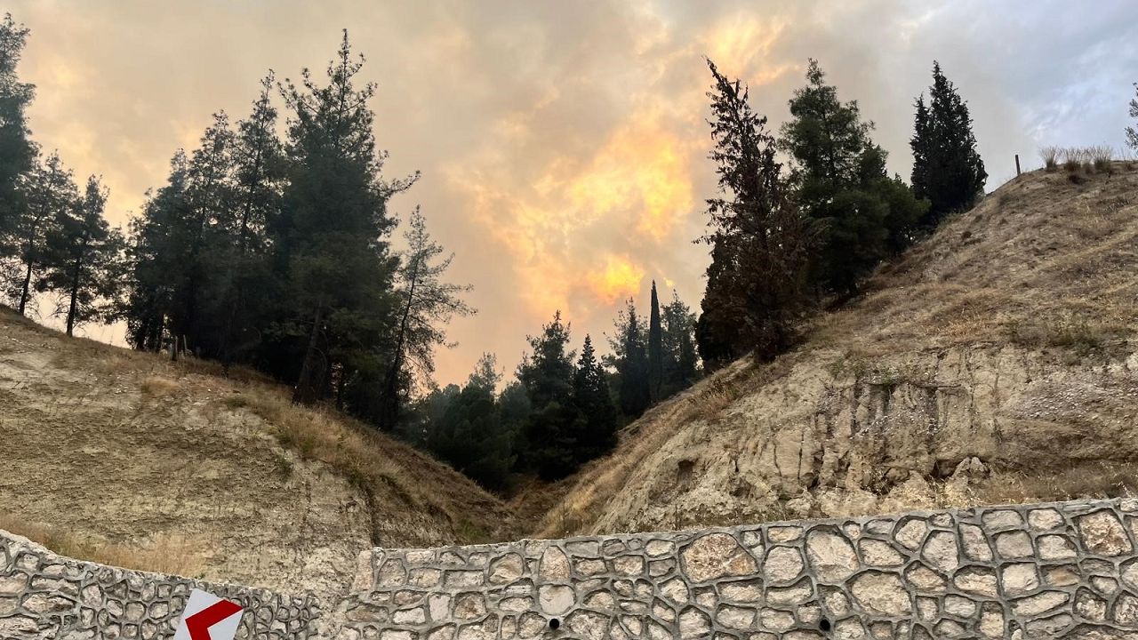 Ellerindeki hortumlarla evinin etrafını ıslatan vatandaş, “Evin etrafını yıkıyorum. Yangın gelmesin diye dua ediyorum. İnşallah bir an önce söndürülür" dedi.