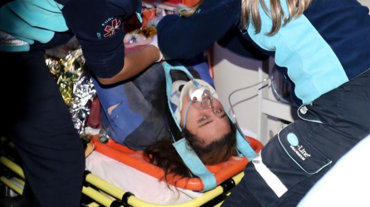 Enkaz altından yaklaşık 9,5 saat sonra çıkarılan Buse Hasyılmaz, ambulansla hastaneye kaldırıldı. AA