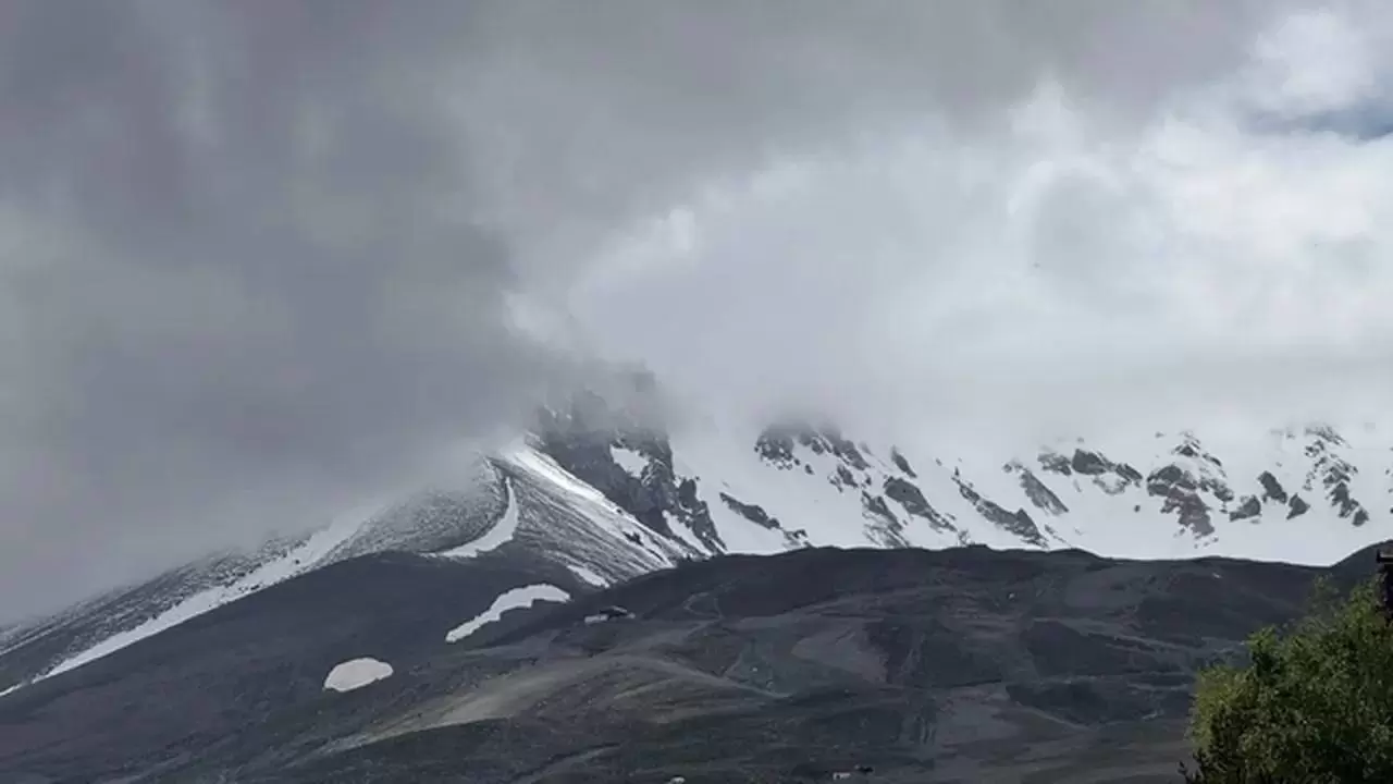 Sabah saatlerinden itibaren de bölgede etkili olan sisin dağılmasıyla zirvedeki kar göründü.