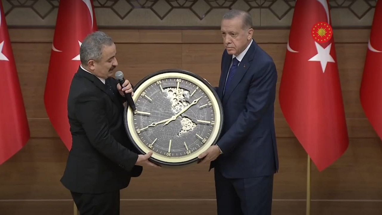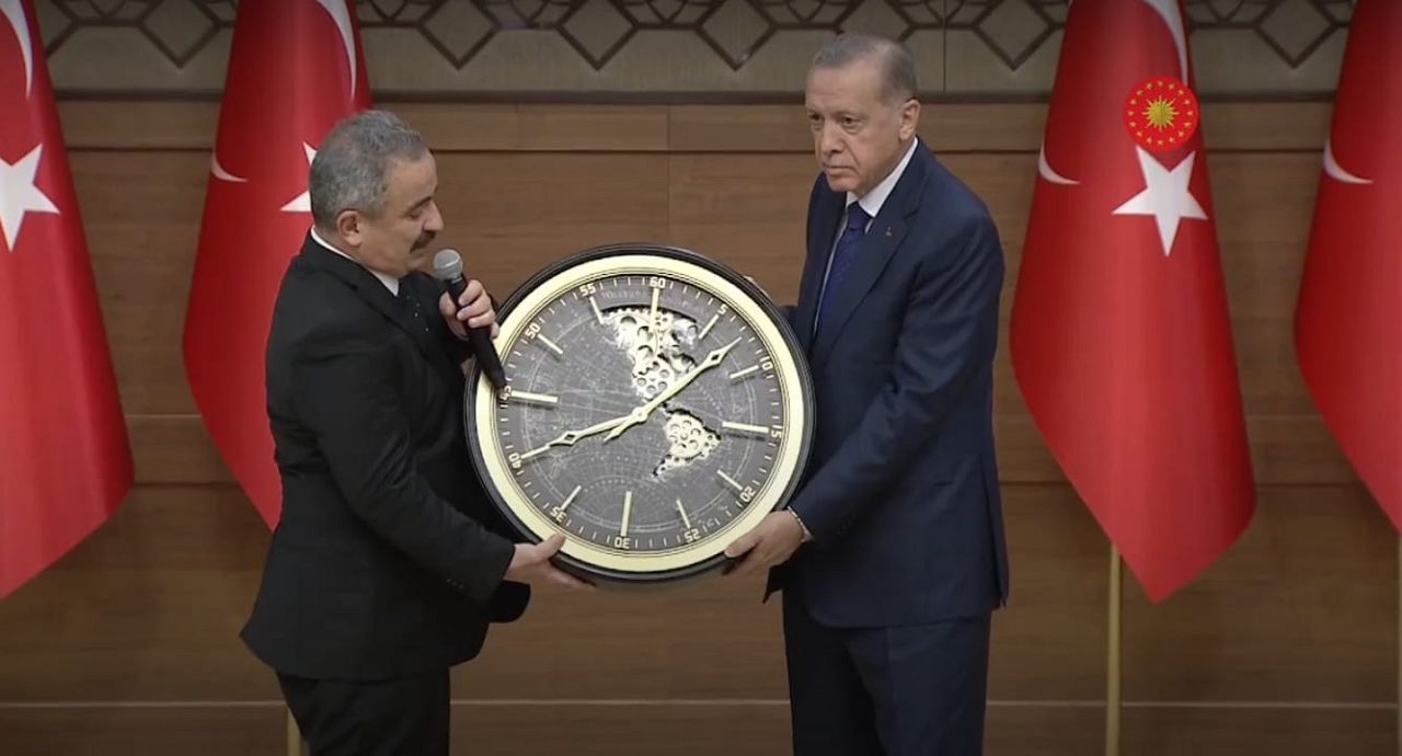 Cumhurbaşkanı Recep Tayyip Erdoğan, “Anadolu Yayıncılar Derneği tarafından” Cumhurbaşkanlığı Külliyesi'nde düzenlenen "7. Anadolu Medya Ödülleri" Töreni'ne katıldı. Yoğun katılımın olduğu ödül töreninde Anadolu Yayıncılar Derneği Başkanı Sinan Burhan “ Vakit Erdoğan vakti diyerek Cumhurbaşkanı Erdoğan’a saat hediye etti. Cumhurbaşkanı Erdoğan da “Sinan Kardeşimin bu hediyesinin içinde dünyaya ayar veren biz varız" ifadelerini kullandı.
