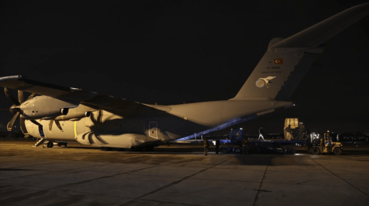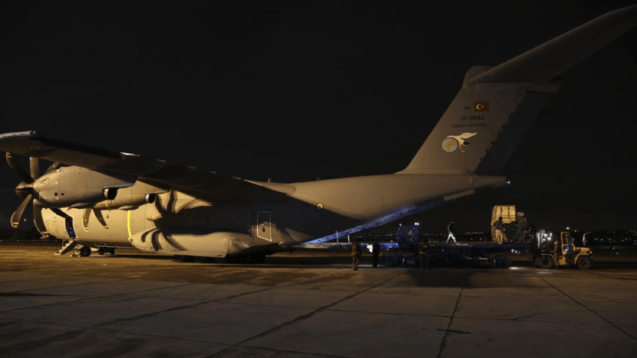 Bu kapsamda sağlık malzemeleri ile yangında zarar gören Türk Sahra Hastanesi'nin tekrar hizmete girmesi için hazırlanan Ağır İklim Tipi Sahra Hastanesi, Etimesgut Askeri Havaalanı'nda A 400M tipi askeri kargo uçağına yüklendi.