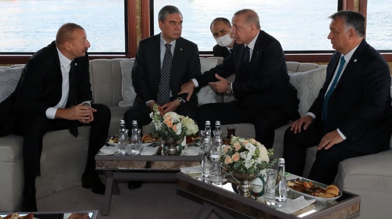 Cumhurbaşkanı Erdoğan, Demokrasi ve Özgürlükler Adası'nda düzenlenecek Türk Konseyi 8. Zirvesi kapsamında İstanbul'da bulunan üye ülkelerin devlet başkanları ile açılış töreni için Sultanahmet'teki Türk Konseyi Genel Sekreterliği binasında bir araya geldi.