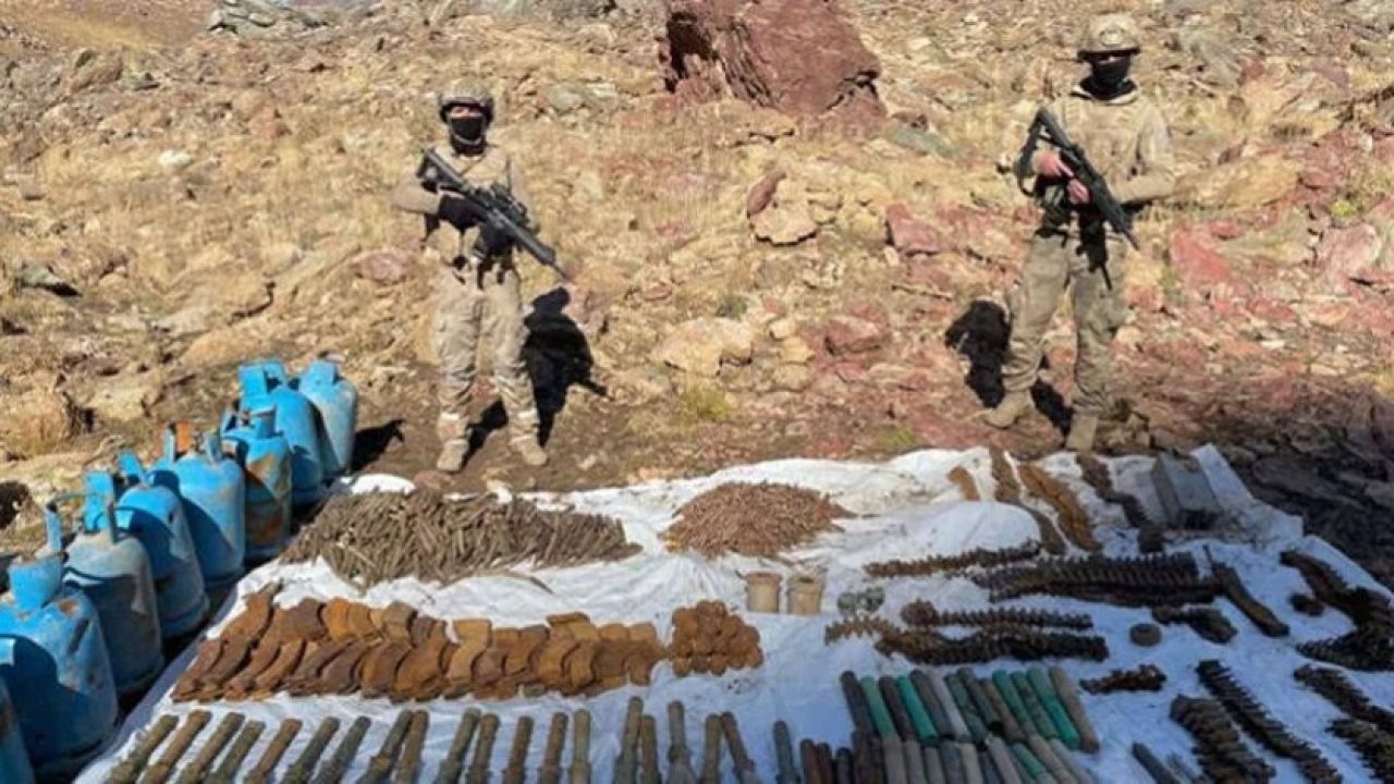 Sığınak ve barınaklar içerisinde G-3 piyade tüfeği, çeşitli çap ve ebatta 4 bin 120 mühimmat, 87 RPG-7 mühimmatı, 32 havan mühimmatı, 38 el bombası, 3 mayın, 4 RF uzaktan komutalı el yapımı patlayıcı (EYP) düzeneği, 73 elektrikli fünye, 300 metre RDX infilaklı fitil, 650 metre elektrik kablosu, çeşitli tipte 104 silah şarjörü, 1 tüfek namlusu, 2 jeneratör, 113 tüp, 3 akü, 1 hilti, 63 jelikan bidon, el dürbünü, 2 güneş paneli, 2 jelikan mazot, 2 bidon amonyum nitrat ve yaşam malzemeleri ele geçirildi.