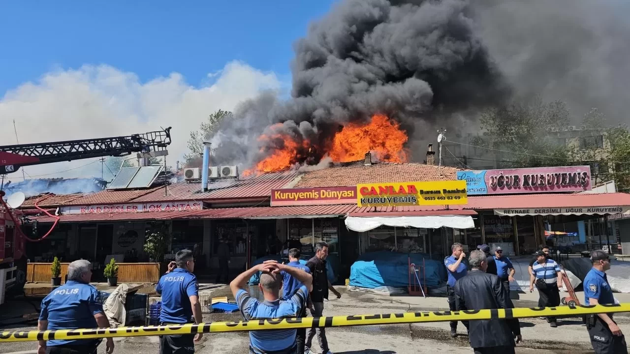 Şehir merkezindeki Buğday Meydanı’nda bulunan tek katlı sıralı haldeki iş yerlerinin çatısında yangın çıktı.