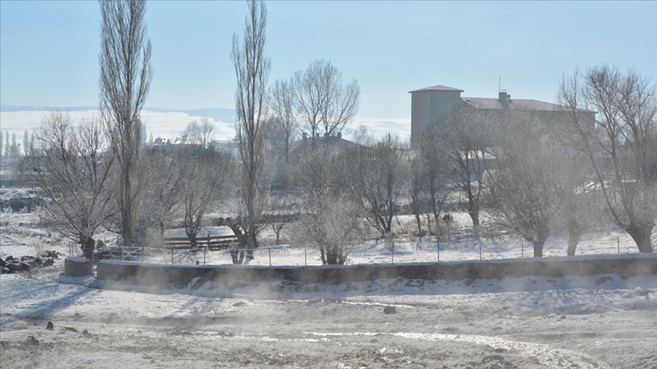 Kars'ta soğuk hava nedeniyle bir çok dere ve gölet dondu.