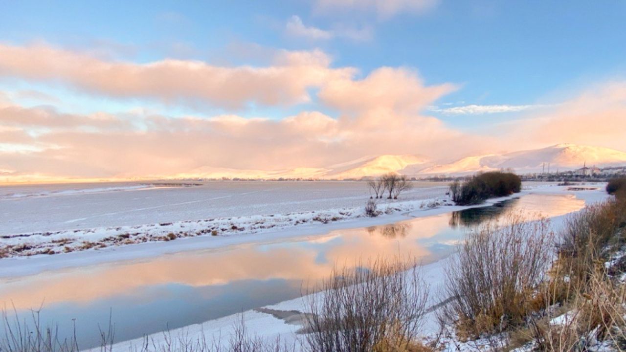 Kentten geçen Murat Nehri'nin yüzeyi de buz tutmaya başladı.