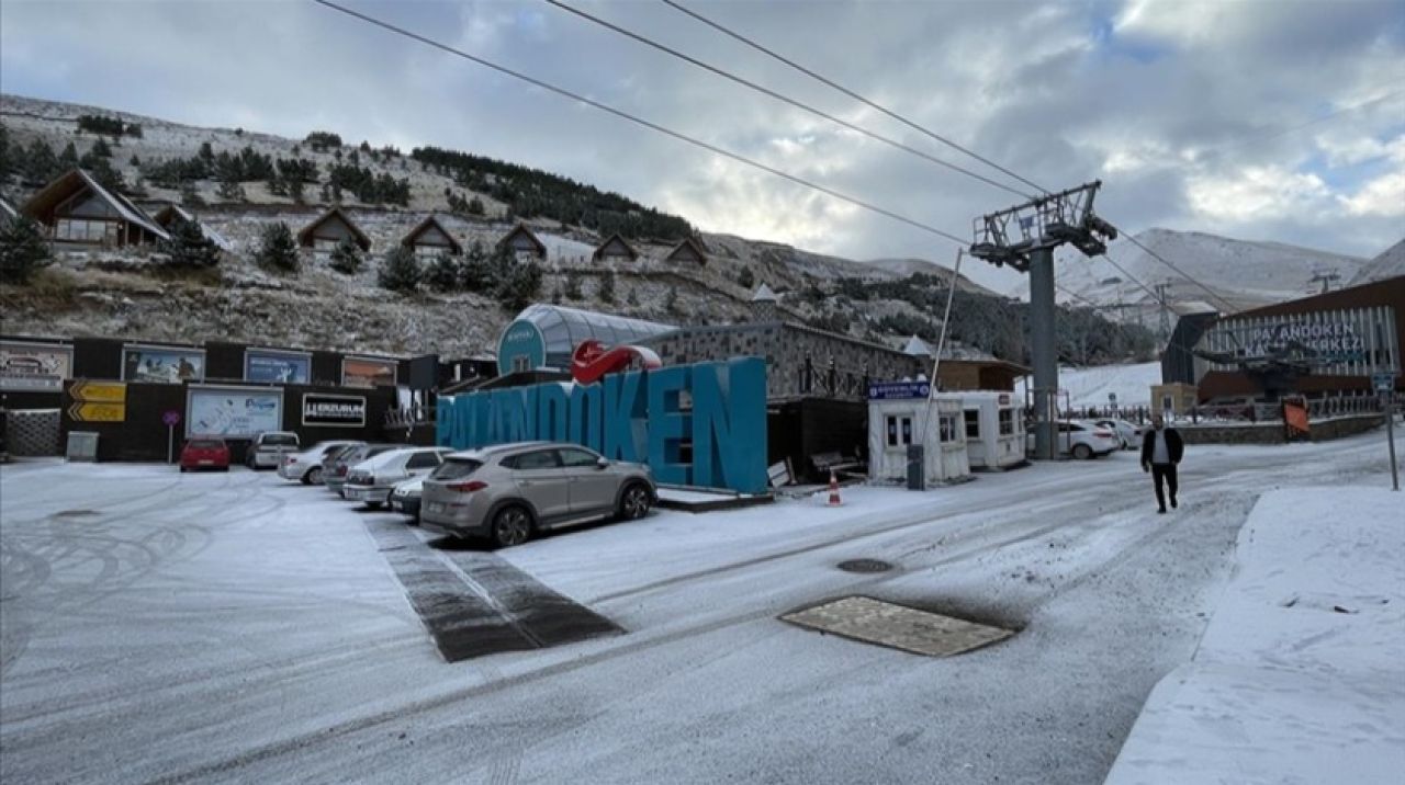 Türkiye'nin önemli kış turizmi merkezlerinden Erzurum'daki Palandöken Dağı'nın yüksek kesimleri karla kaplandı.
