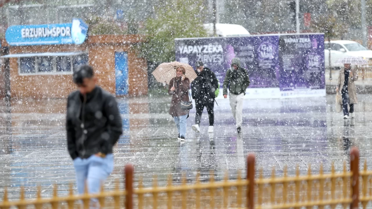 Erzurum'da birkaç gündür aralıklarla etkili olan sağanak, bu sabah yerini kar yağışına bıraktı.