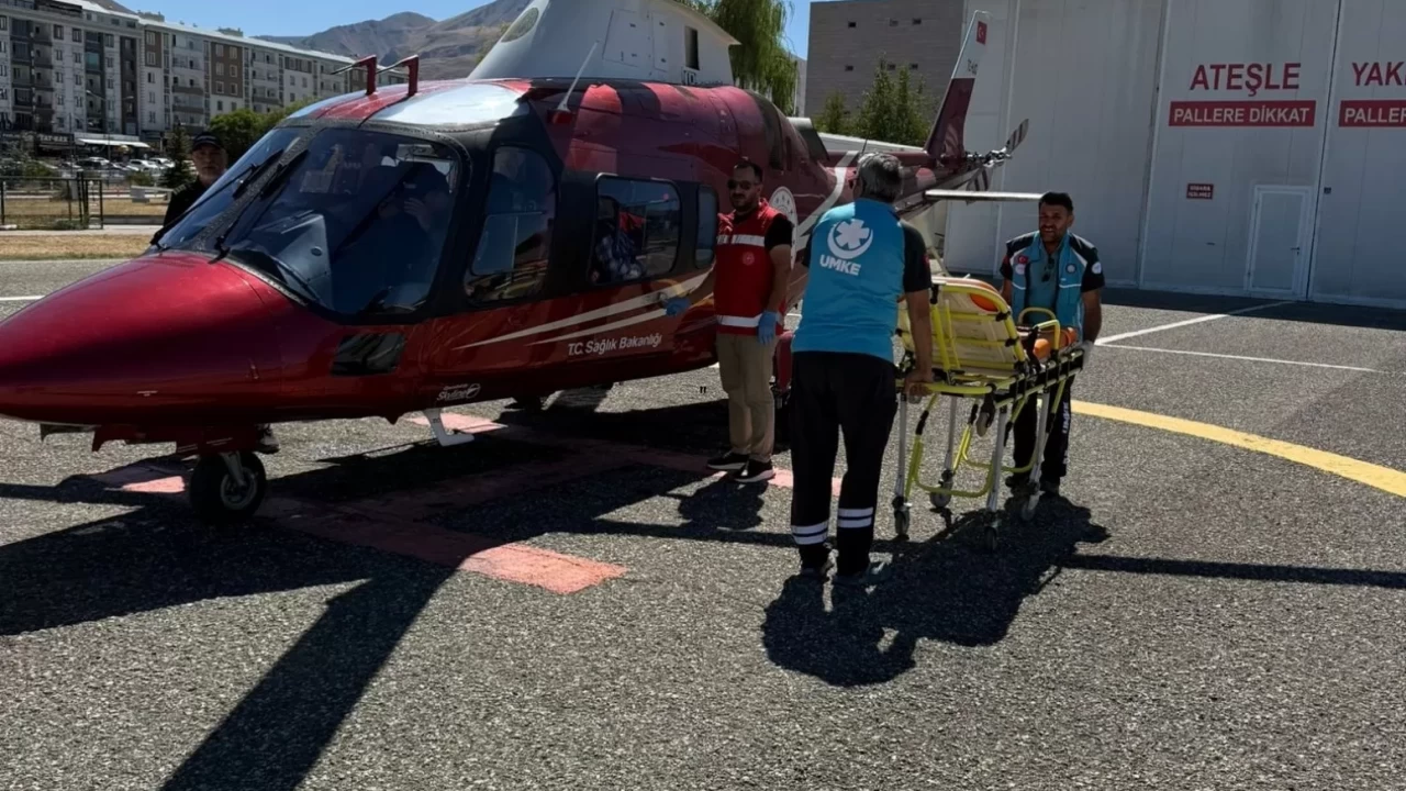 Sağlık ekiplerince helikopterden alınarak ambulansa konulan A.Ö, Atatürk Üniversitesi Araştırma Hastanesi'ne sevk edildi.
