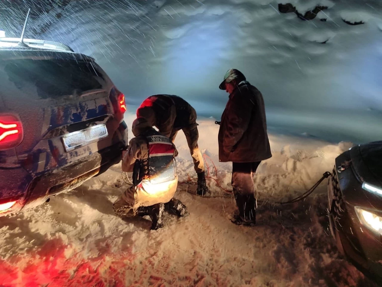 Yoğun kar yağışı ve soğuk hava nedeniyle zor anlar yaşayan vatandaşa ilk olarak ekipler tarafından destek verildi. Ardından mahsur kalan araç güvenli bir şekilde bulunduğu yerden çıkarıldı.