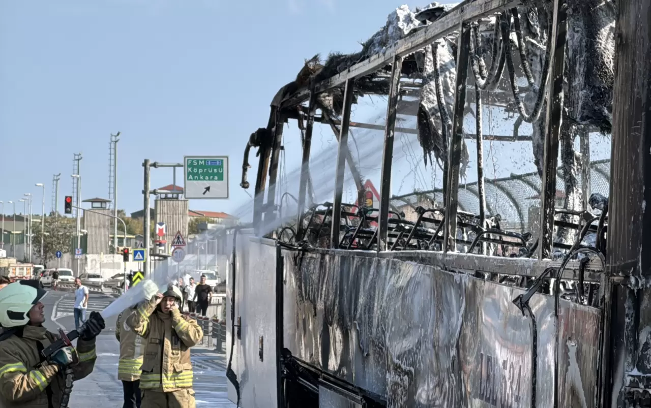 Motor kısmından duman çıktığını gören şoför, yol kenarına çektiği aracı durdurarak yolcuları tahliye etti. Bu sırada yoldan geçen İstanbul Büyükşehir Belediyesi'ne ait su tankerinin personeli, hortumla yangına müdahale etmeye çalıştı. Çevredeki vatandaşlar da yangın tüpleriyle söndürme çalışmalarına katıldı.