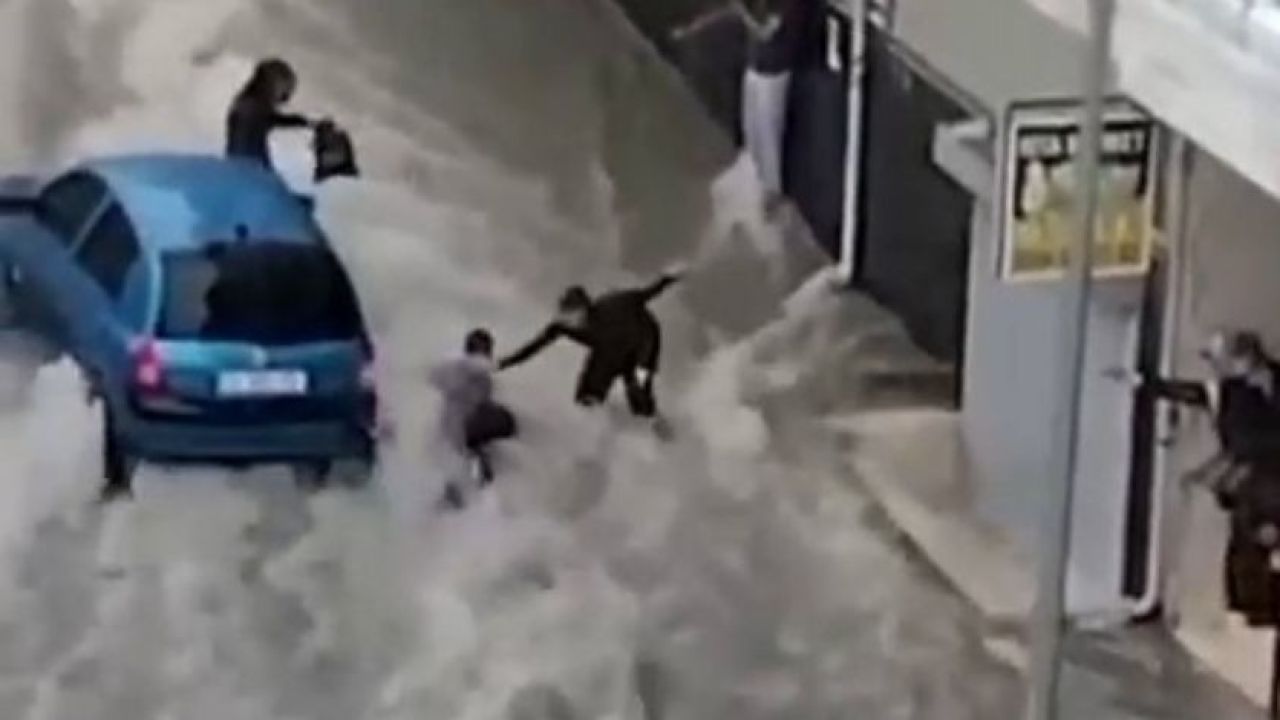 Esenyurt'ta sabah etkili olan sağanak yağış, cadde ve sokakları adeta dereye döndürdü. Sağanak yağış sırasında yolun karşısına geçmeye çalışan biri çocuk iki kişi, sulara kapıldı. Şiddetli şekilde akan suların içerisinde düşe kalka ilerleyen çocuk, bir anda gözden kayboldu. Sularda sürüklenen çocuk, bir araca tutundu. Yardıma koşan vatandaşlar çocuğu kısa sürede kurtardı. O anlar kameralara yansıdı.