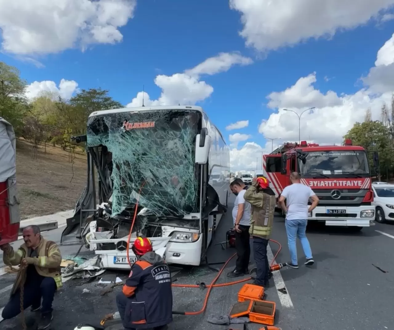 Esenyurt'ta yolcu otobüsü, önündeki kamyona çarptı. Otobüs şoförü yaralanarak sıkıştı, itfaiye tarafından çıkarıldı ve hastaneye kaldırıldı. Kaza nedeniyle TEM Otoyolu'nda iki şerit kapatıldı ve trafik yoğunluğu oluştu. Ekipler, kazanın yaşandığı bölgede çalışmalarını sürdürüyor.