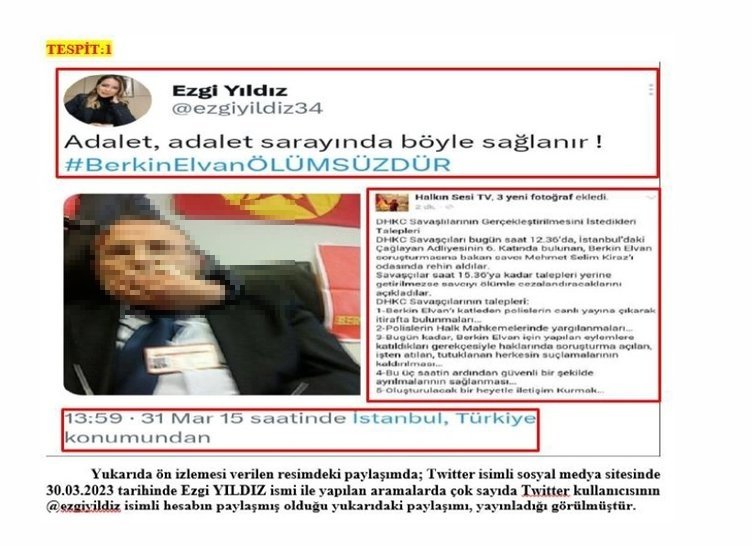 Savcı Kiraz'ın şehit edilmesi sonrasındaki paylaşım dışında polis teşkilatına halka zülüm örgütüdür gibi örgütsel paylaşımları da ortaya çıkan Yıldız paylaşımların yaptığı hesabın kendisine ait olduğunu söylediği sırada ifadeyi durdurup avukatıyla görüştüğü öğrenildi.