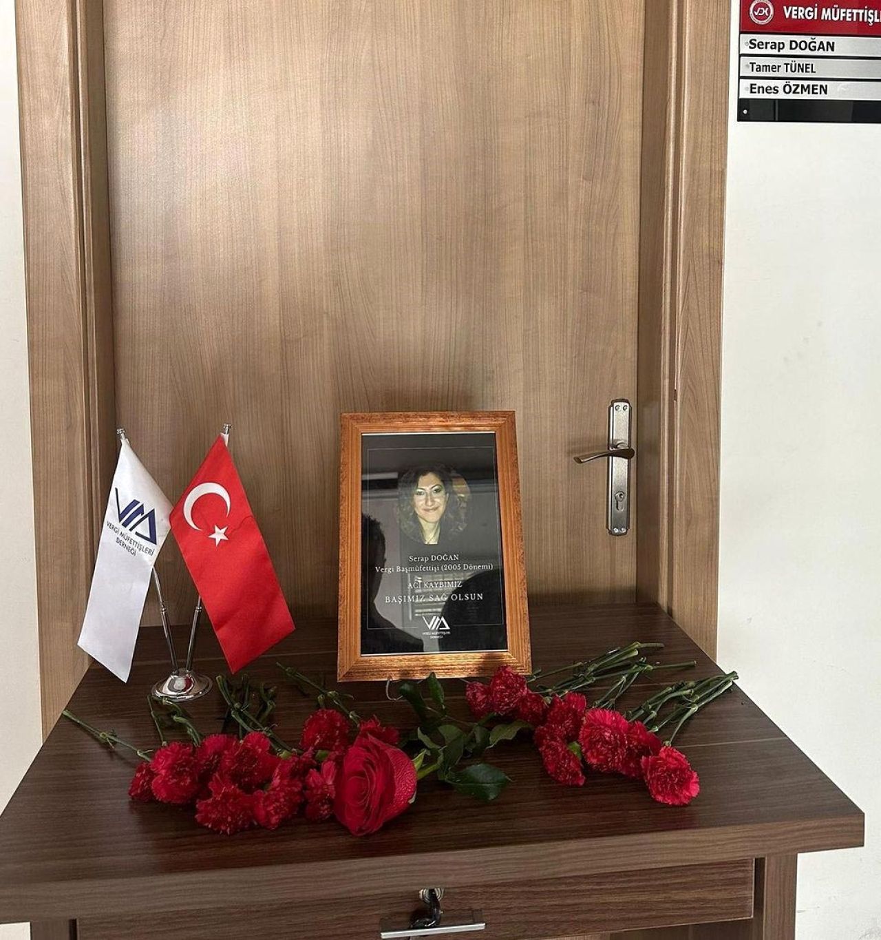 Vergi Müfettişleri Derneği Genel Merkezi'nde Serap Doğan için taziye masası oluşturuldu.