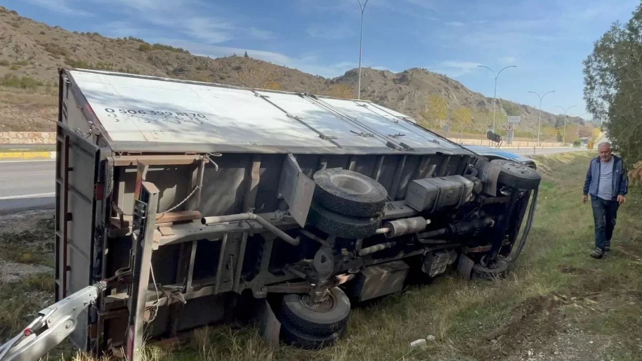 16 ACR 477 plakalı nakliye kamyonetinin sürücüsü H. K., virajı aldıktan kısa süre sonra kontak anahtarının düşmesi nedeniyle direksiyonunu kontrol edemedi. Kamyonet yol kenarındaki şarampole yuvarlanarak yan yattı.