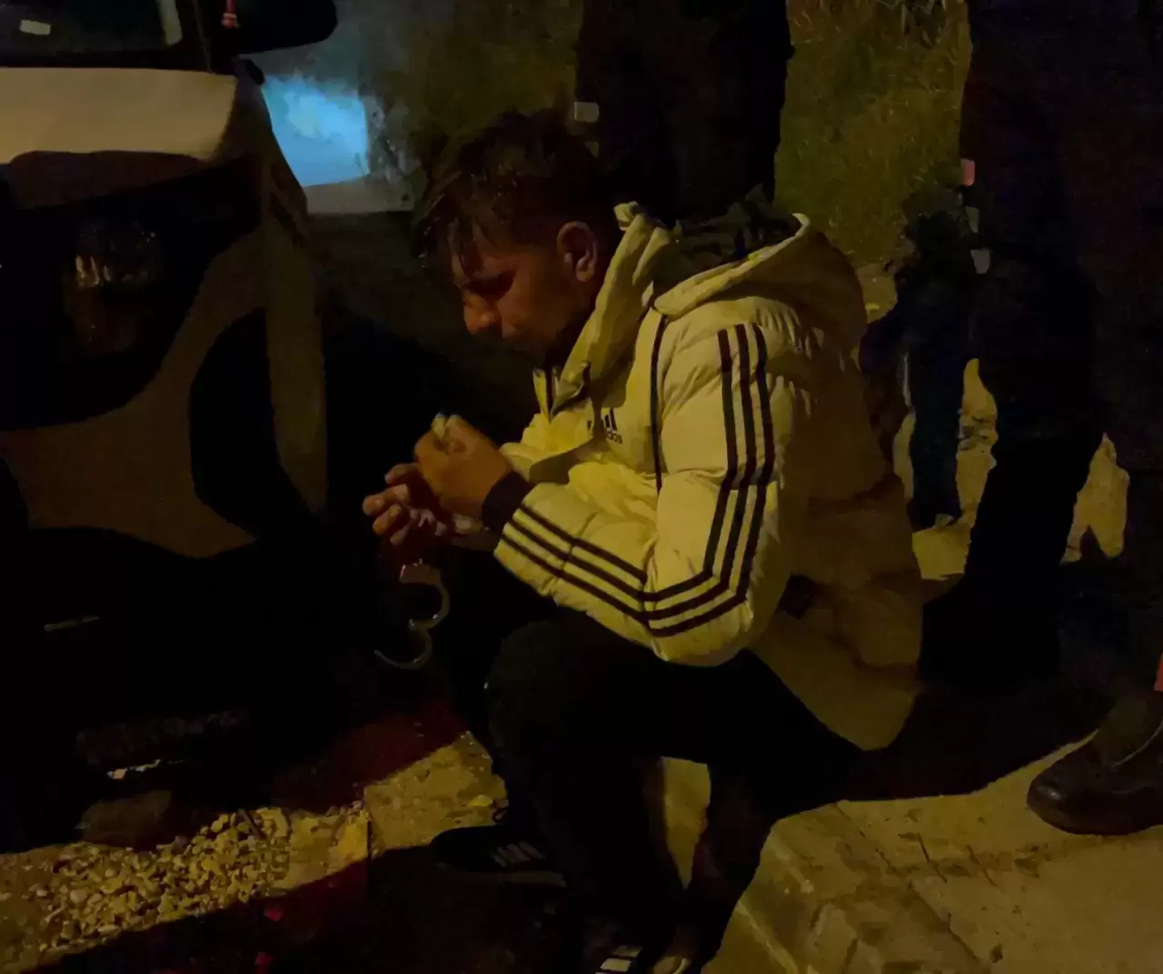 Araçtan indirilen 18 yaşındaki B.E., biber gazı müdahalesiyle etkisiz hale getirildi ve ters kelepçe takıldı. Polis, B.E.’nin güvenliği için su vererek el ve yüzünü yıkamasını sağladı.