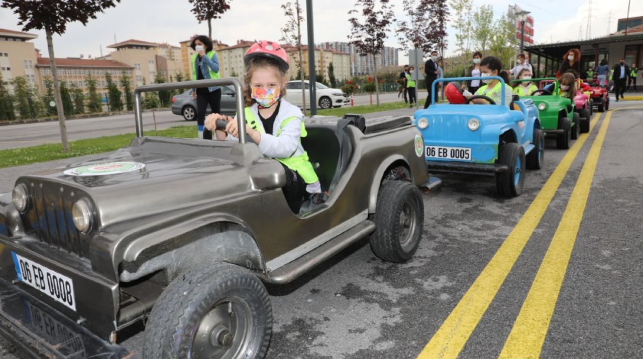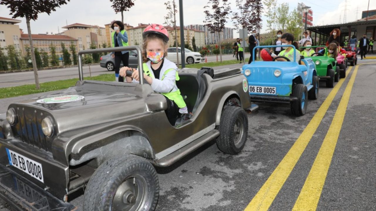 Çocuklara önce teorik trafik bilgileri görsellerle anlatıldı. Daha sonra eğitim araçlarına binen çocuklar emniyet kemerlerini taktılar. Son kontrolleri görevliler tarafından yapılan çocuklar, gaza basarak parkurda tur attılar. Görevliler, çocuklara yaya geçitlerinden geçerken nelere dikkat etmeleri gerektiği konusunda bilgilendirdiler.