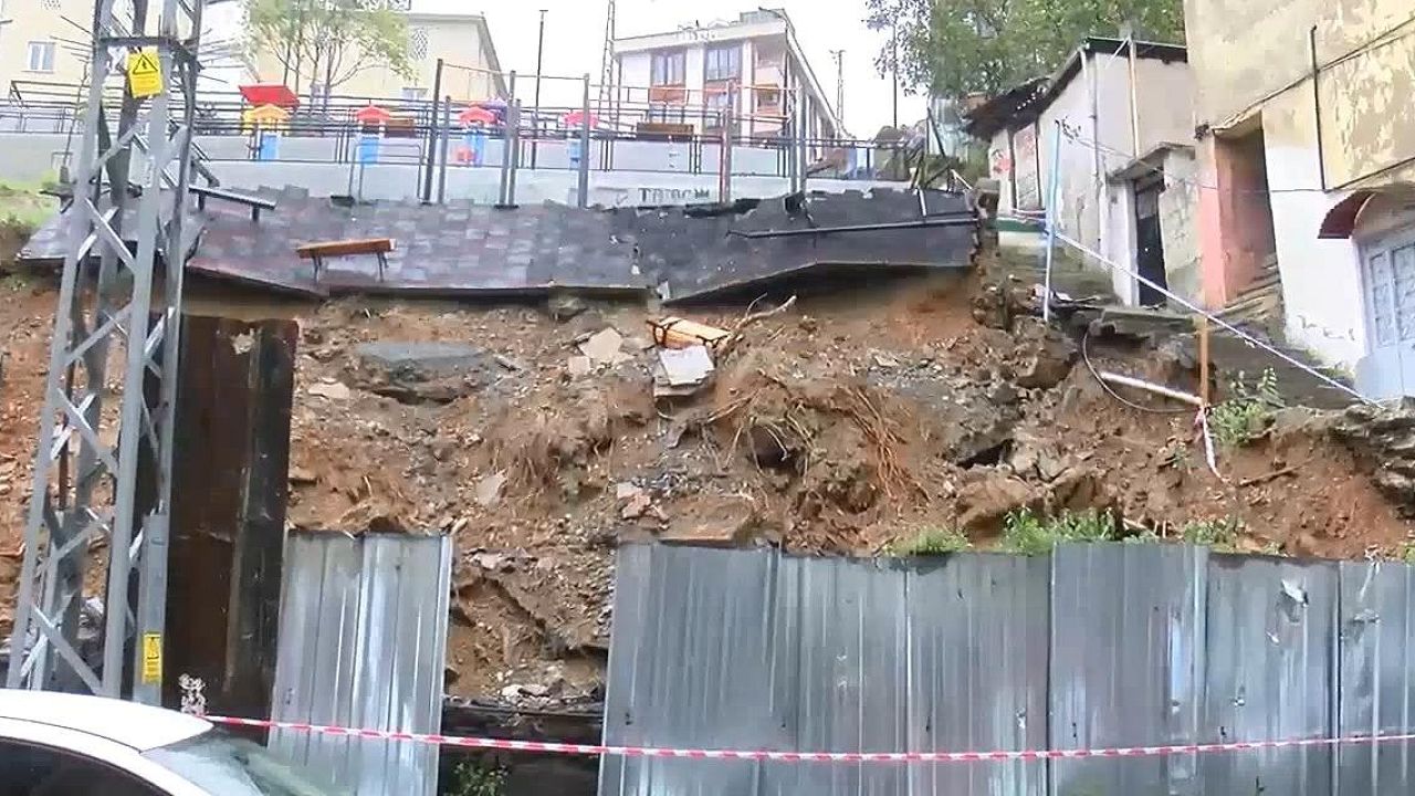 Edinilen bilgilere göre olay, sabaha karşı Güzeltepe Mahallesi'nde Urfa Sokak'ta meydana geldi. Gece boyunca devam eden şiddetli yağış sonrası sokakta bulunan bir parkın oturma alanı ve çitleri inşaat alanına doğru kaydı. Olayda ölen ya da yaralanan olmadı.