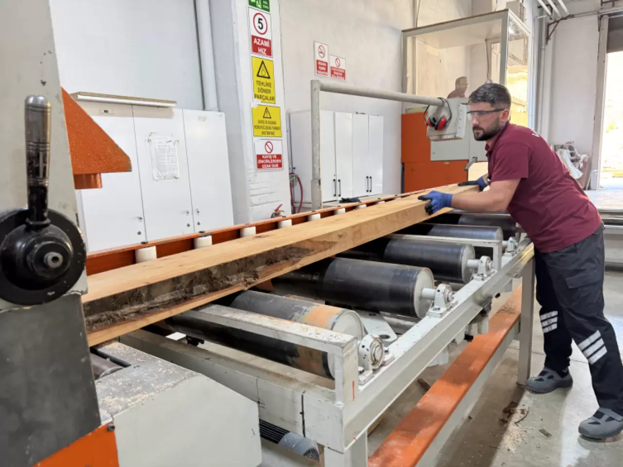 Tomrukları keresteye çevirip levha haline getirerek katma değerli ürünler oluşturduklarını anlatan Hacıömeroğlu, "Bu yolculuk 2017'de başladı. 2017 senesinde Orta Doğu'da masif pervaz ihtiyacını karşılamak suretiyle üretime başladık. 2024 Mart ayında bu fabrikayı faaliyete aldık. Şu anda 82 kişiyle burada çalışıyoruz. Burası yaklaşık 9 bin metrekare. 5 bin 500 metrekare kapalı alanı mevcut" dedi.