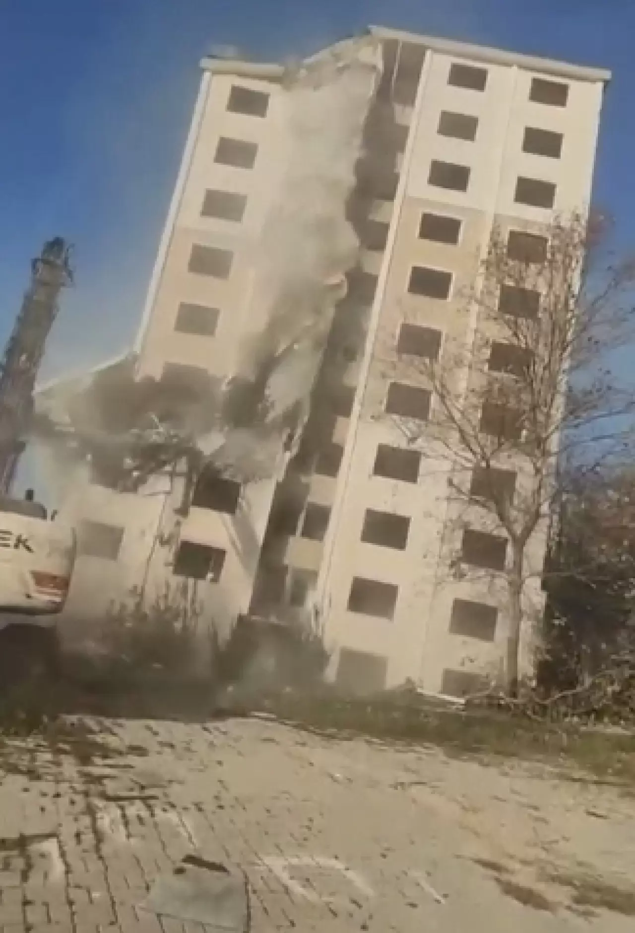 Site içerisindeki 10 katlı binanın yıkım çalışmaları sırasında aniden çöktüğü anlar olay anında 'bir şey yok' diyen vatandaş tarafından cep telefonu kamerasıyla kaydedildi.