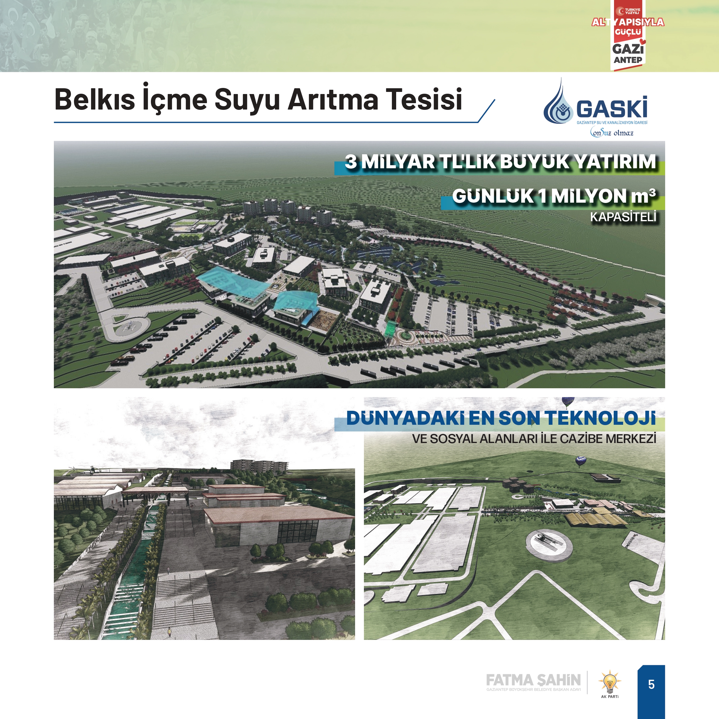Planlanan 3 milyar TL’lik yatırımla kurulacak Belkıs İçme Suyu Arıtma Tesisi’nde ise hizmet vermeye başladığında günlük 1 milyon metreküp su arıtma kapasitesine sahip olacak. Tesis, dünyadaki en son teknoloji ile donatılırken sosyal alanları ile bir cazibe merkezi yaratılacak.