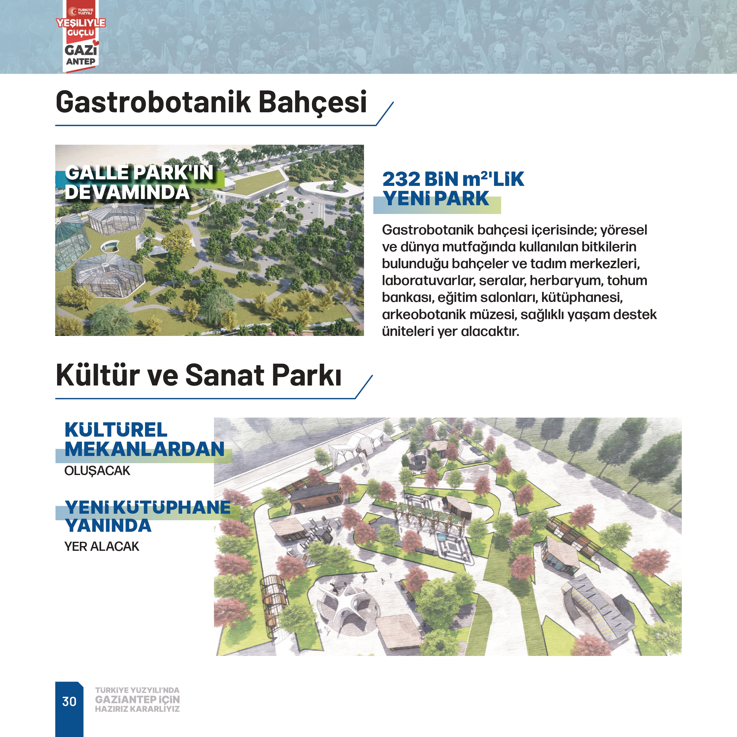 Başkan Şahin açıkladığı yeni projeleriyle Çınarlı Parkı ve Şehitler Abidesi revize edilecek, Humanız, TRT Orman Parkları yapılacak. Yeni yaşam alanları olan Kuzeyşehir ve Güneyşehir’e yeni millet bahçeleri inşa edilecek.