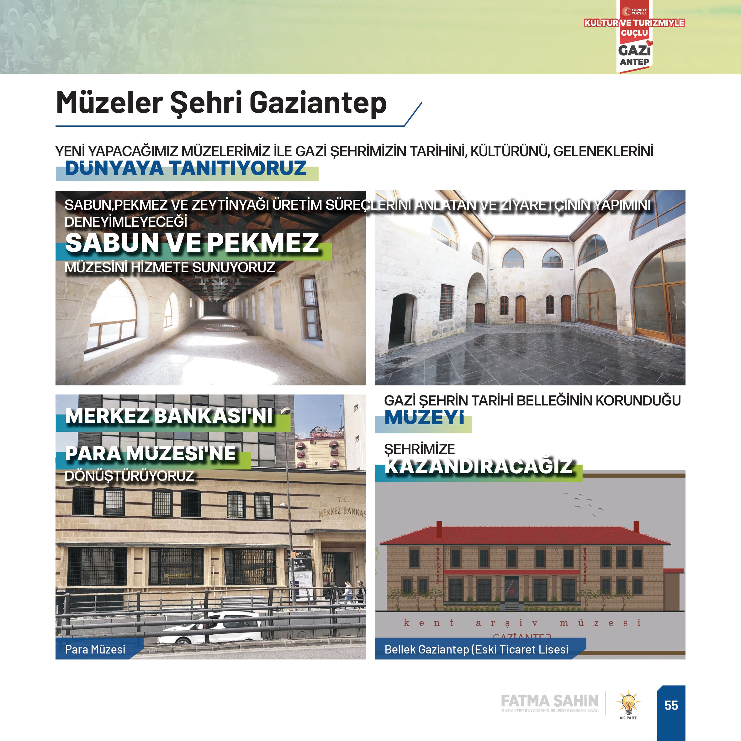 Gaziantep’in zengin kültürü, Başkan Fatma Şahin ile dünyaya duyuruluyor, turizme kazandırılıyor. Yeni yapılacak müzeler, yabancı turistleri Gazi şehirde tarihi yolculuğa çıkaracak.