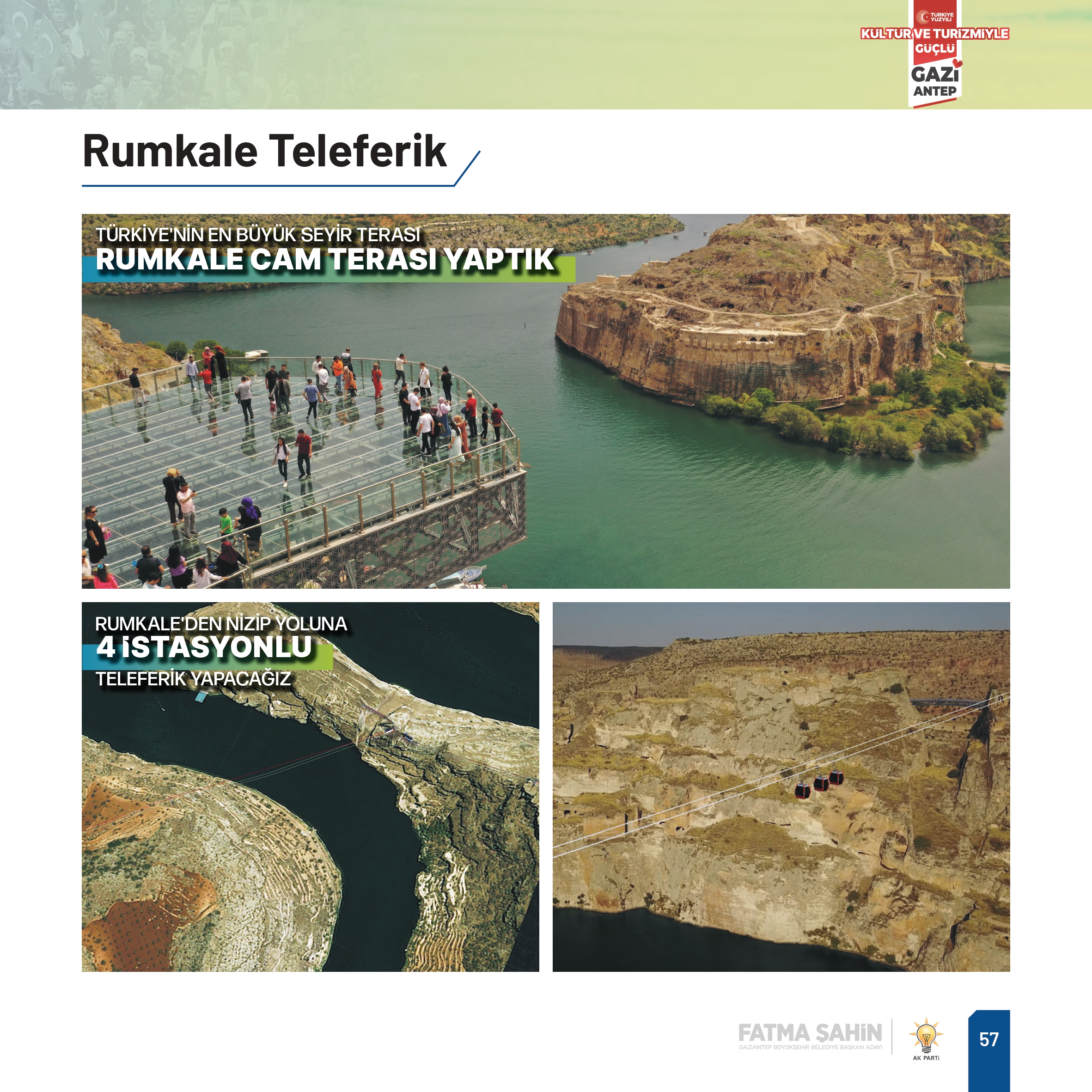 Türkiye’nin en büyük seyir terasına sahip Rumkale için yen 4 istasyonlu teleferik projesi hayata geçirilecek. Böylelikle Rumkale’den Nizip Yolu’na bağlantı sağlanmış olacak.