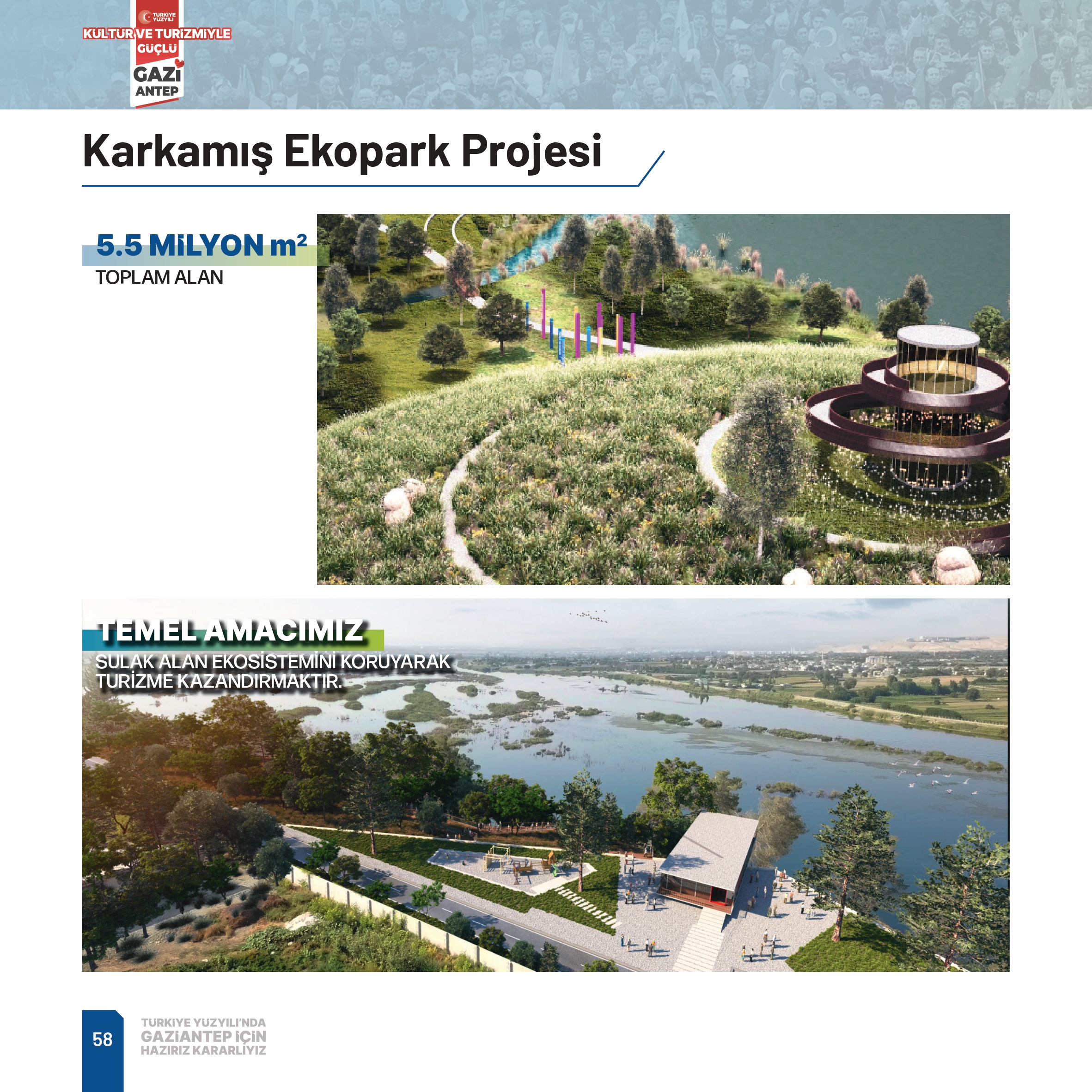 Sınır ilçesi Karkamış’ta 5.5 milyon metrekare toplam alanda yürütülecek proje ile bölgede bulunan endemik çeşitlilik başta olmak üzere ekosistem korunarak turizme kazandırılacak.