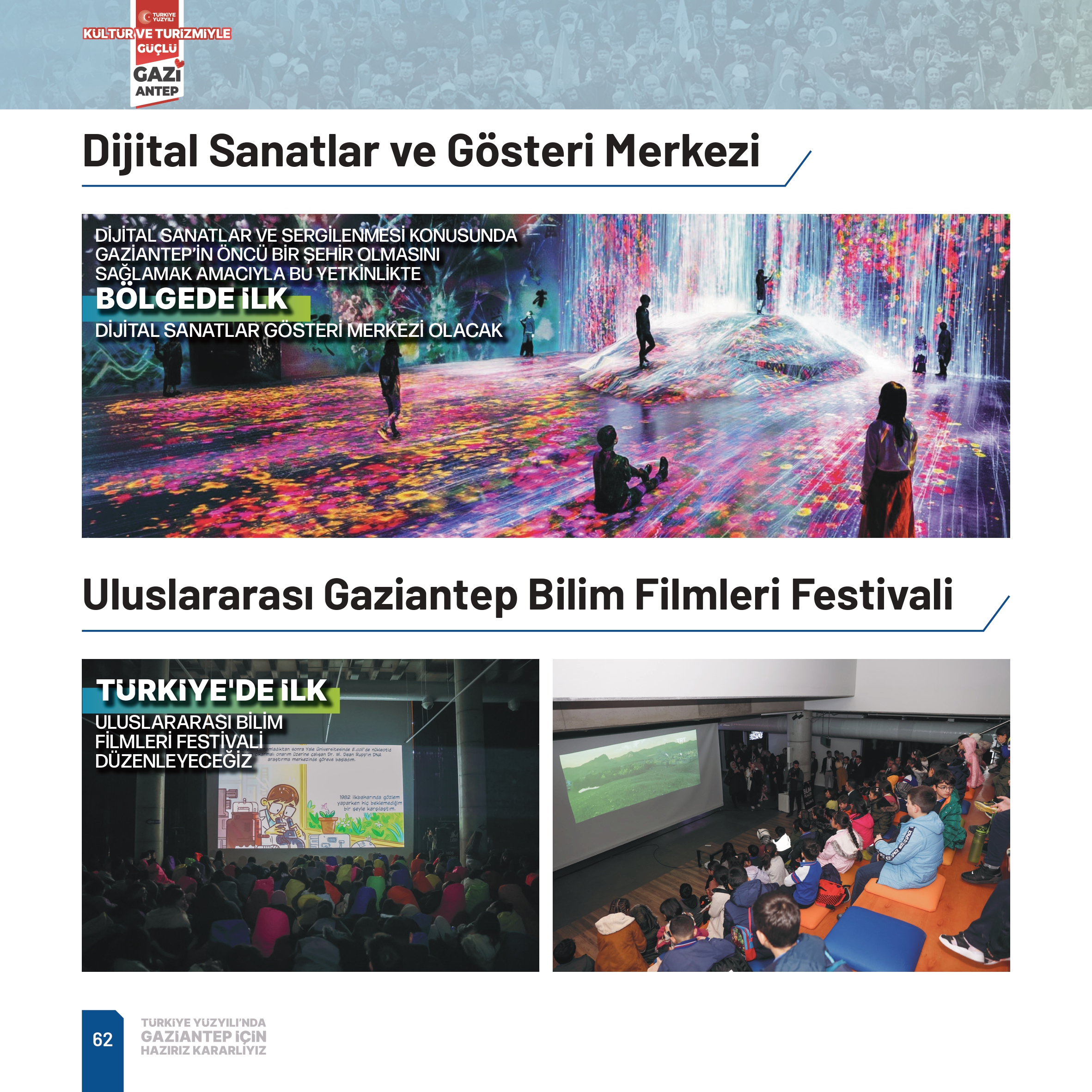 Dijital sanatlar ve sergilenmesi konusunda Gaziantep’in öncü bir şehir olmasını sağlamak amacıyla Dijital Sanatlar Gösteri Merkezi bölgede bir ilk olacak.