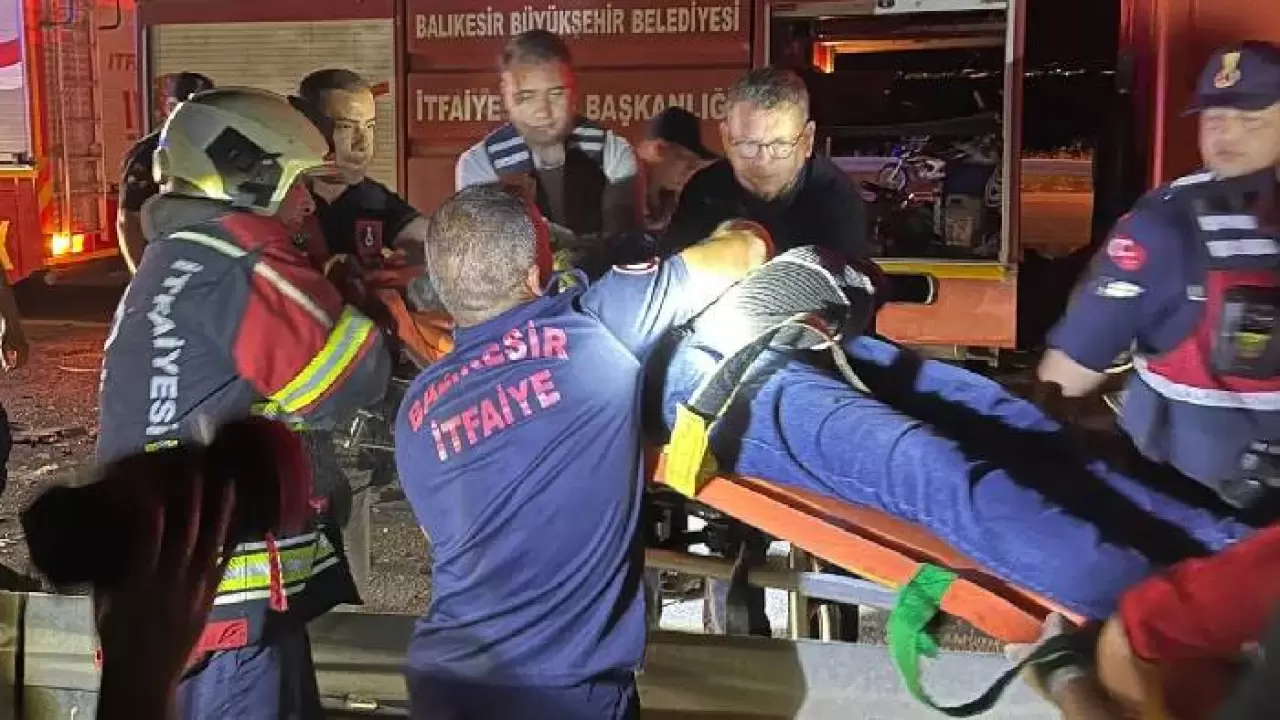 Kazada 5 kişi yaralanırken, araçta sıkışan bir kişi Ayvalık İtfaiye Grup amirliği ekiplerinin çalışmasıyla kurtarıldı.