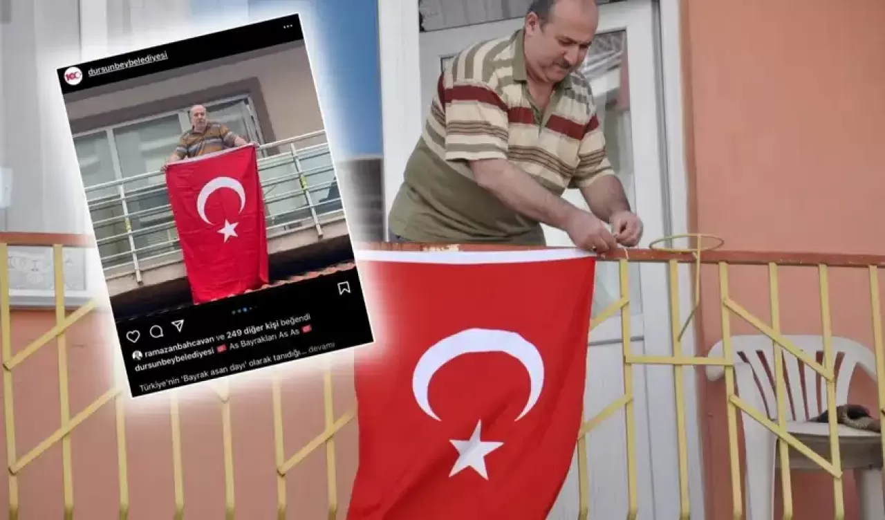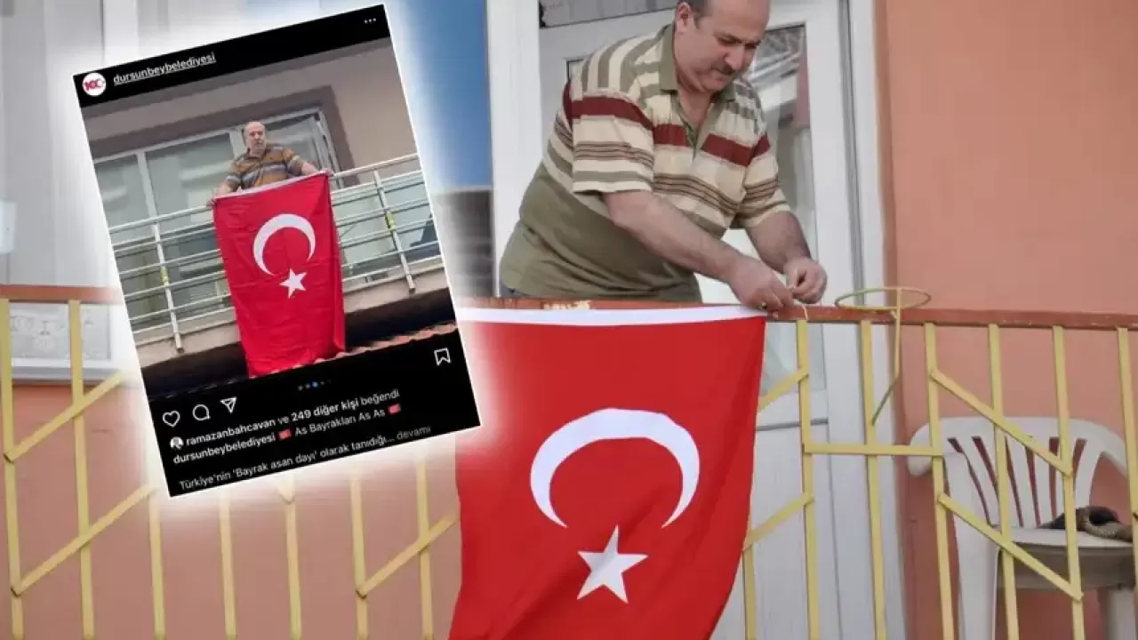 Dursunbey Belediyesi sosyal medya hesabından yapılan paylaşımda; "Balkonuna Belediye ekiplerimiz tarafından kendisine hediye edilen, şanlı Türk bayrağını asan Bayrak asan dayı, 100. yıl vesilesi ile tüm hemşehrilerimizi bayraklarını iş yerlerine, evlerine asmalarını istedi" denildi.