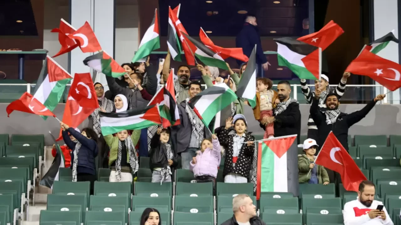 Kocaeli Stadı'nda oynanacak karşılaşma için gelen Filistinli çocuklar, refakatçileri ile birlikte maçı izleyecek.