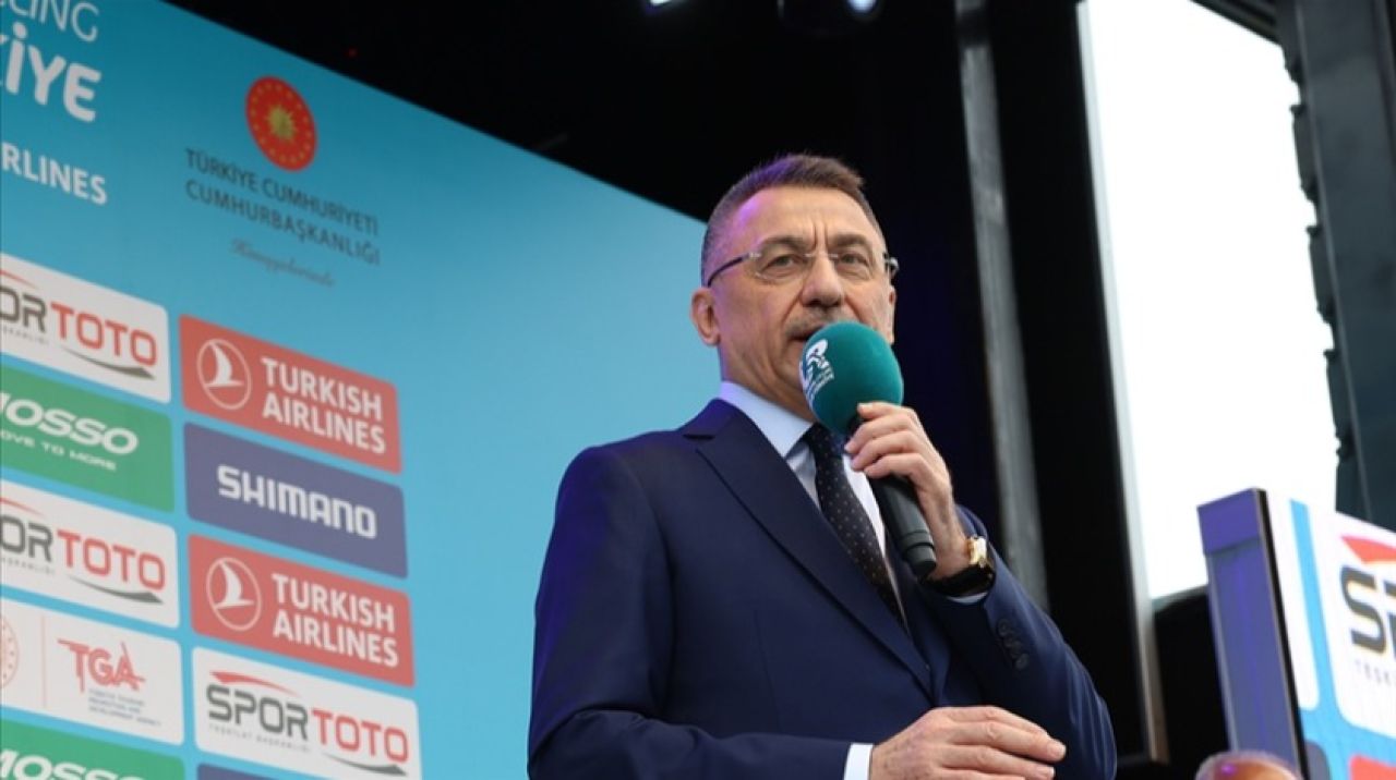 Taksim Meydanı'nda düzenlenen 57. Cumhurbaşkanlığı Bisiklet Turu Ödül Töreni'nde konuşan Fuat Oktay, dünyanın dört bir yanından gelip Bodrum'da pedal çevirmeye başlayan sporcuları, 8 günlük mücadelelerinin ardından İstanbul'da karşılamaktan mutluluk duyduğunu söyledi.