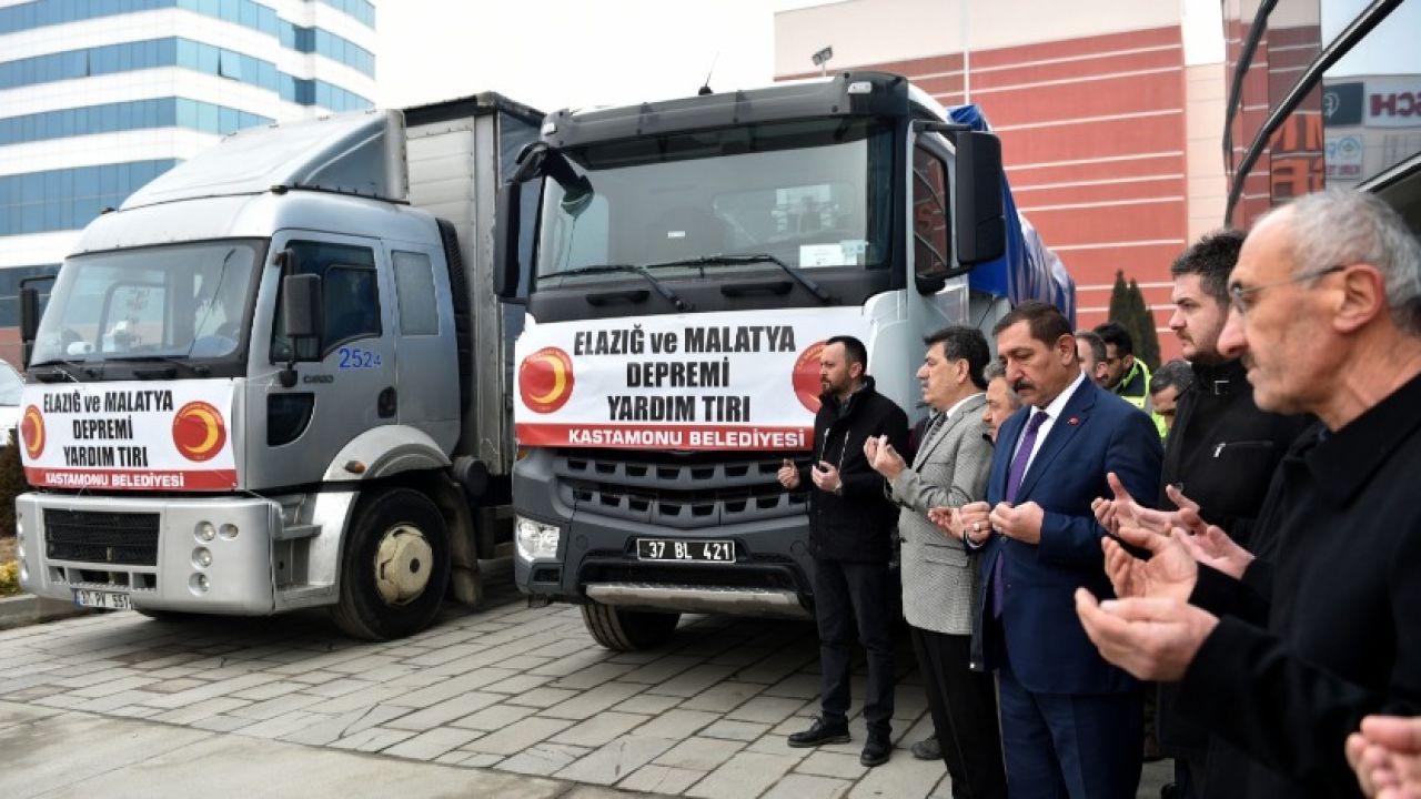 Kastamonu Belediye Başkan Yardımcıları Mehmet Yurt, Nuray Çolak, Serkan Bahçacıoğlu, Belediye Meclis Üyeleri Metehan Hamzaoğlu, Cihangir Çelikoğlu ve Ferdi Kargılı, İl Afet ve Acil Durum Müdürü Ekrem Küçükbayram ve belediye birim amirlerinin de yer aldığı uğurlamada tırlar yapılan duanın ardından Elazığ ve Malatya’ya ulaşmak üzere yola çıktı.