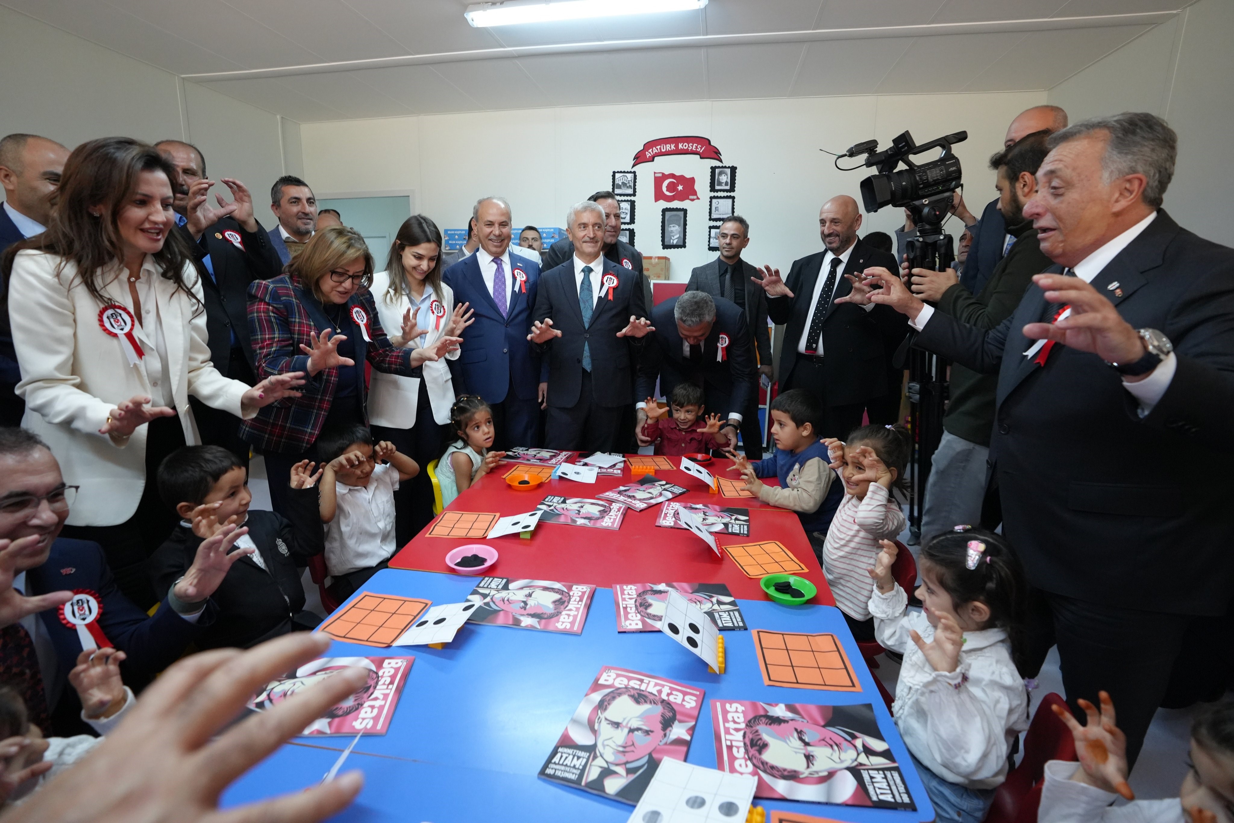 Konuşmaların ardından Beşiktaş Başkanı Ahmet Nur Çebi, protokol üyelerine plaket takdim etti. Plaket takdimi sonrası Çebi ve protokol üyeleri, kurdele keserek Beşiktaş İlkokulu'nun açılışını gerçekleştirdi. Heyet, daha sonra okulu gezerek öğrencilerle bir araya geldi. Çebi ve beraberindeki protokol, öğrencilere çanta hediye etti. Bu esnada Beşiktaş Başkanı Ahmet Nur Çebi'nin öğrencilerle 'Kartal Pençesi' yapması ve 'Beşiktaş' tezahüratlarında bulunması ise renkli görüntüler oluşturdu.