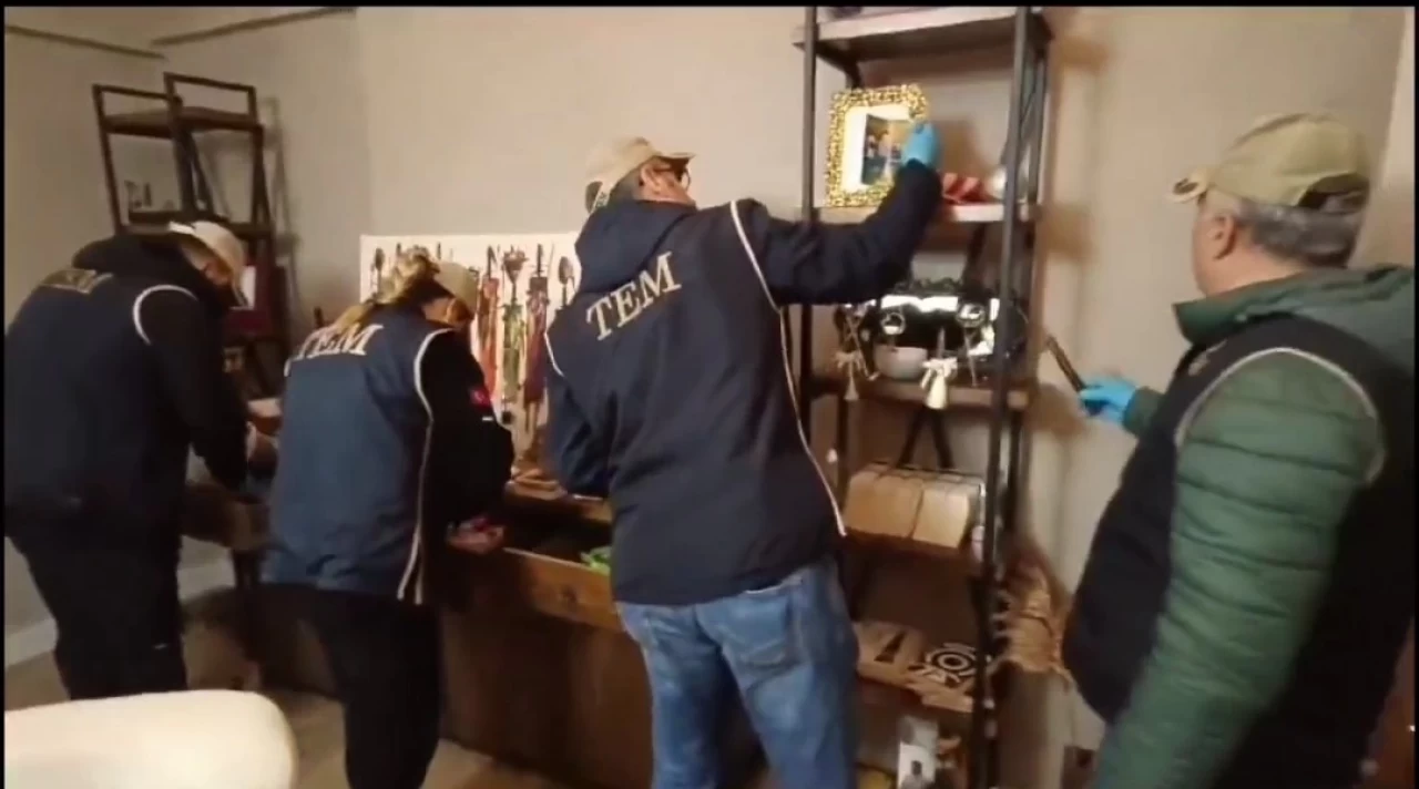 Şüphelilere ait ikametlerde ve 3 iş yerinde yapılan aramalarda 1 adet tabanca, 2 adet şarjör, 172 adet fişek ve çok sayıda dijital materyal ele geçirildi.