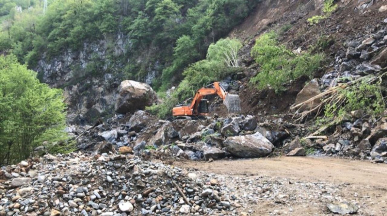 Yamaçtan dökülen toprak birikintisi ve kaya parçaları dolayısıyla Dereli-Şebinkarahisar kara yolu ulaşıma kapandı.