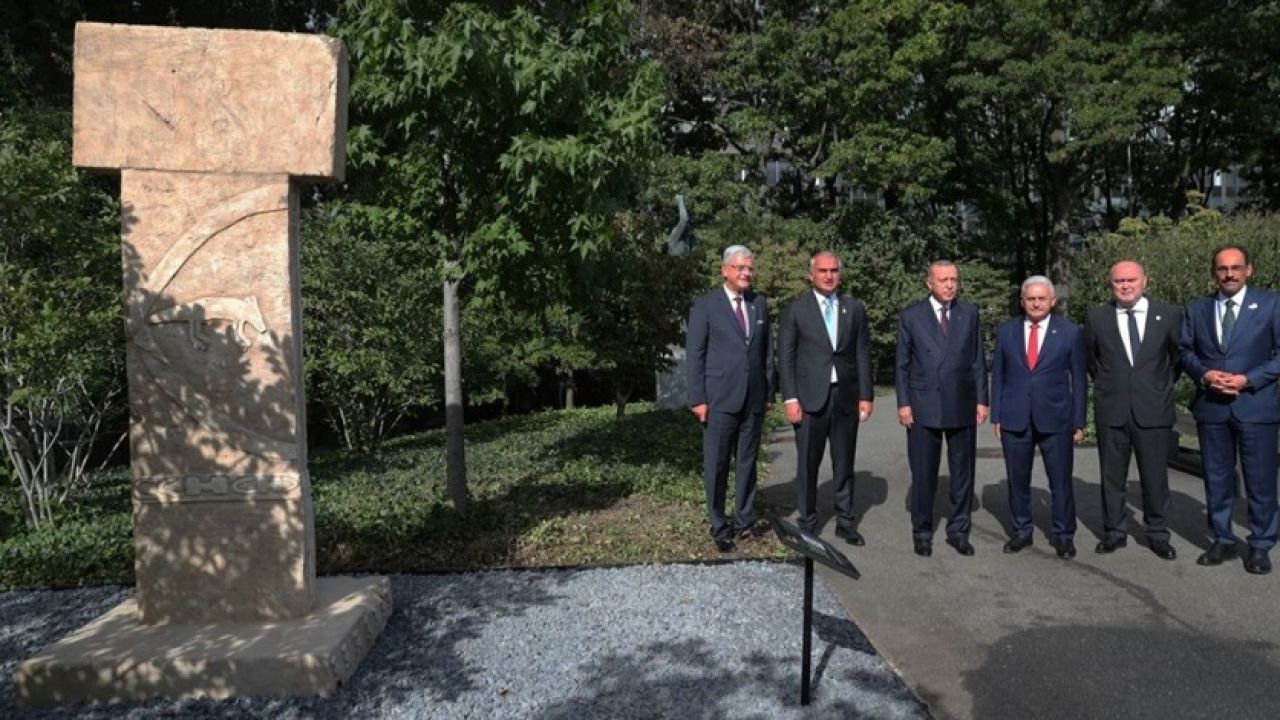 Cumhurbaşkanı Recep Tayyip Erdoğan, Birleşmiş Milletler (BM) bahçesinde sergilenmeye başlanan Göbeklitepe'deki dikilitaşın replikasına ilişkin paylaşımda bulundu.