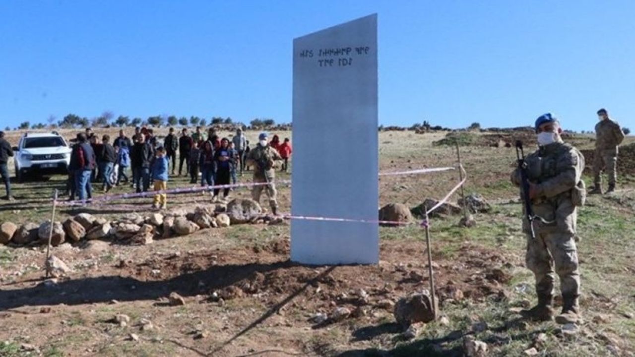 Yaklaşık 3 metre yüksekliğinde, 1 metre genişliğinde, üzerinde Göktürk alfabesiyle "Gökyüzüne bak, Ay'ı gör" ifadesinin yazılı olduğu metal blokun kim ya da kimler tarafından hangi amaçla dikildiği belirlenememişti.