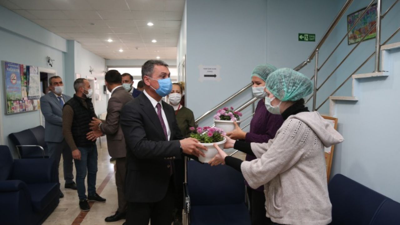 Sağlık çalışanlarına meyve ikram ettikten sonra, Gölbaşı Belediyesi serasında üretilen Kasımpatı çiçeğini de takdim eden Ramazan Şimşek, ayrıca fillasyon ekibinde çalışan diş hekimlerinin 22 Kasım Dünya Diş Hekimler Gününü ’de kutladı.