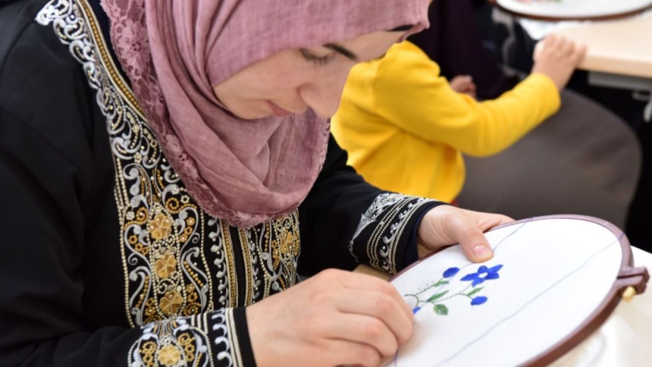 El sanatları kursuna katılan kadınlar, kurs sayesinde hem meslek öğrenecek hem de yaptıkları ürünlerle ev ekonomilerine katkı sağlayacak.