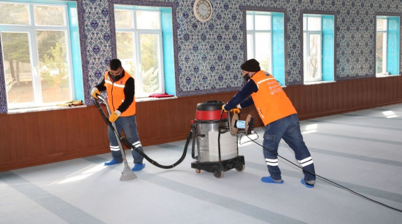 Çalışma kapsamında ilçe genelindeki camilerin halı ve avluları; Temizlik İşleri Müdürlüğü'ne bağlı ekipler tarafından, belediyeye ait makine ve ekipmanla yıkanıp temizlendi.