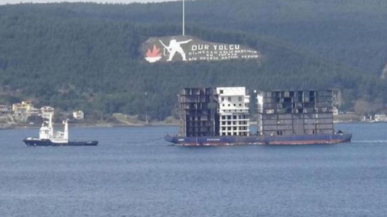 Üzerindeki 8 çelik bloğu İtalya'ya götüren platforma, Boğaz geçişi sırasında, Kıyı Emniyeti Genel Müdürlüğü'nün 'Kurtarma-6' römorkörü eşlik etti.