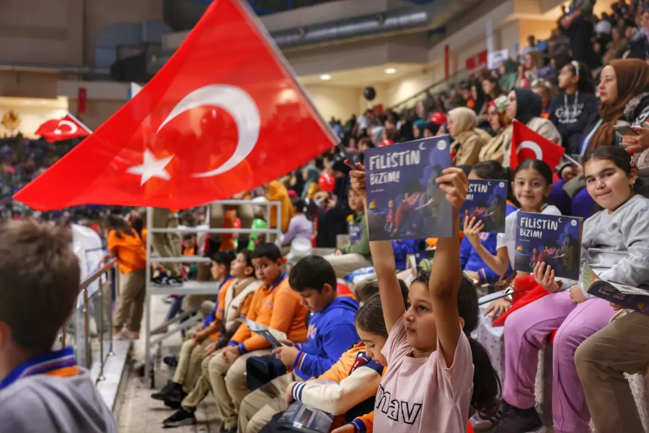 Büyükşehir, etkinliği Guinness olmadan gerçekleştirdi. Şehit Recep Topaloğlu Spor Salonu’nda gerçekleştirilen etkinliğe Kocaeli’nin dört bir tarafından çocuklar anne ve babaları ile katılım sağladı. Kocaeli’de en büyük kapalı spor salonlarından biri olan Recep Topaloğlu, ellerinde Türk ve Filistin bayrakları, dövizler ve balonlar olan vatandaşlar tarafından dolduruldu. ‘Filistin Bizim’ kitabının yazarı Merve Gülcemal’in katılımı ile gerçekleştirilen etkinlikte eller semaya açılarak Gazze halkının özgürlüğü için dua edildi.