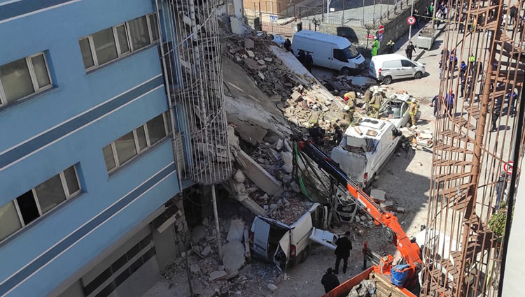 Sanayii Mahallesi Malazgirt Caddesi'ndeki yenileme çalışmaları kapsamında boşaltılan bir bina çöktü. Binanın önünde park halindeki 4 araç da kısmen enkaz altında kaldı.