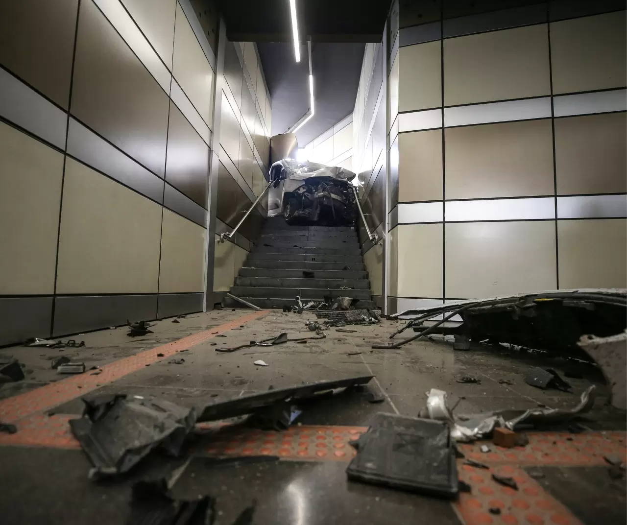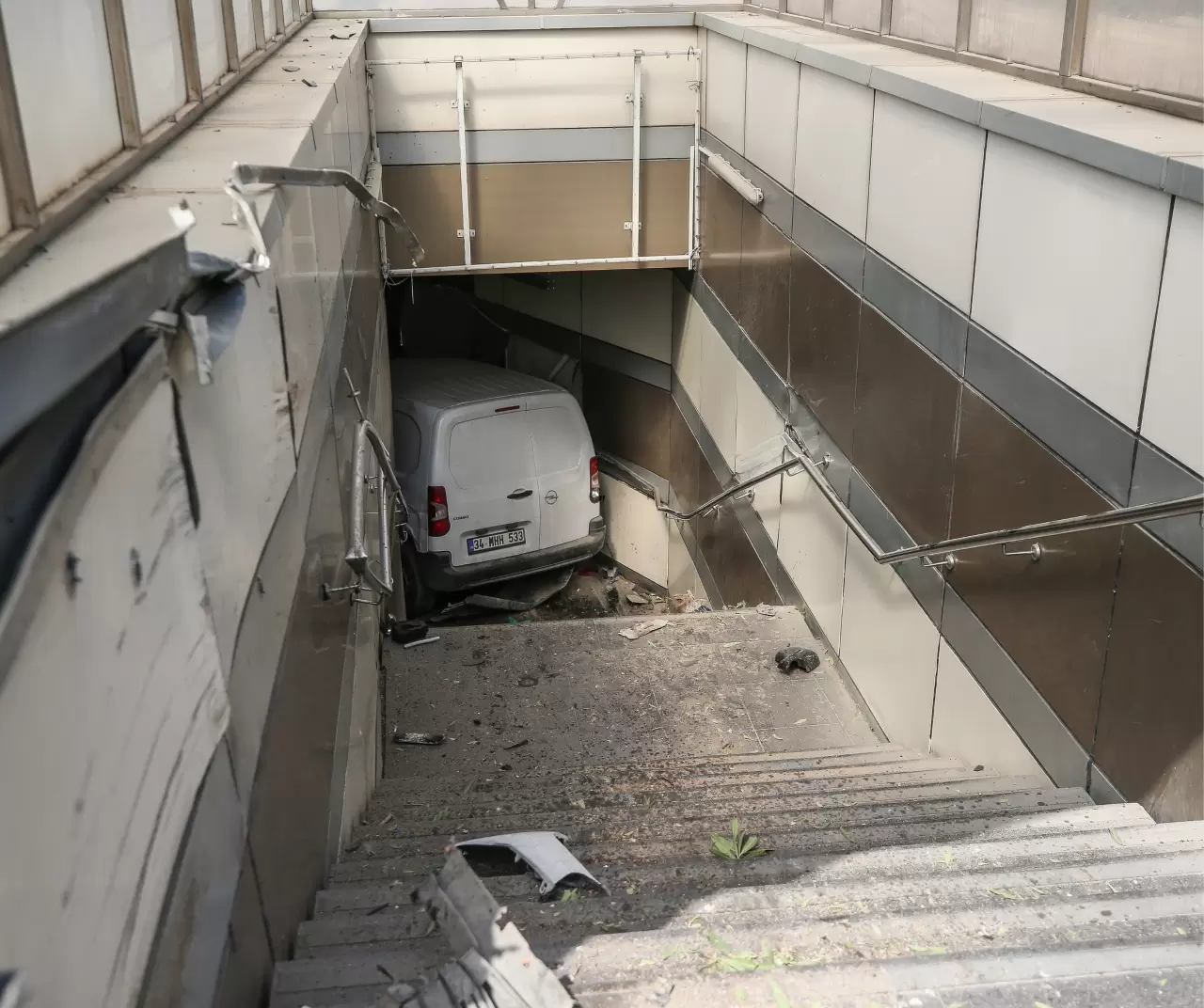 Sürücüsünün kontrolünden çıkan araç, Bağlarbaşı Esentepe Metro İstasyonu alt geçidinin merdivenlerine girerek sıkıştı.