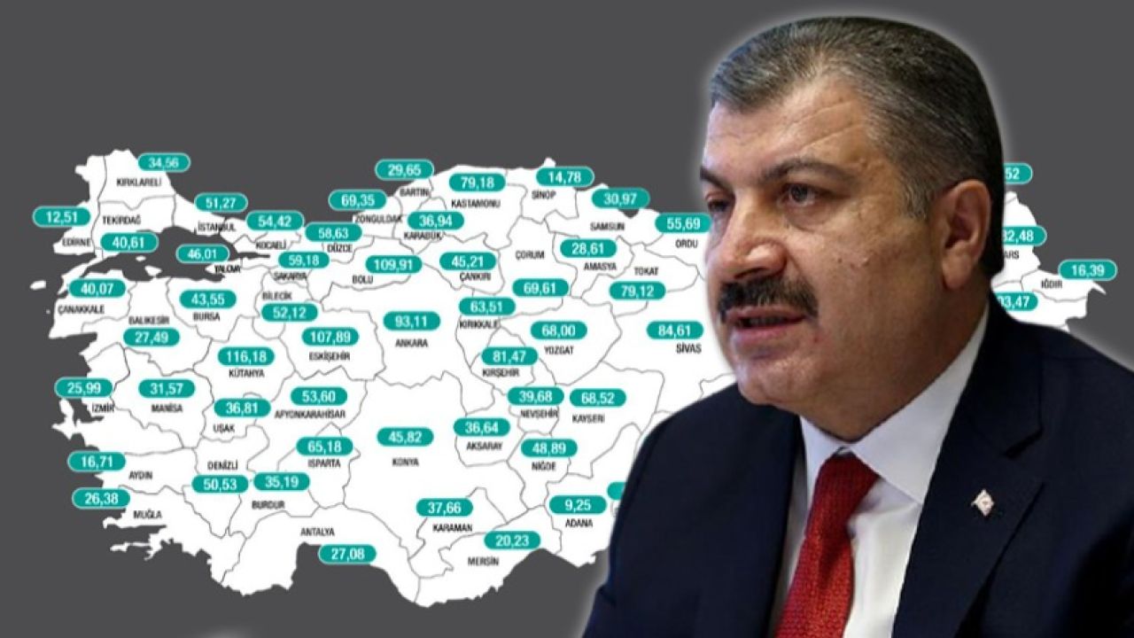 Sağlık Bakanı Koca, 12-18 Haziran arasında illere göre her 100 bin kişide görülen Kovid-19 vaka sayılarını açıkladı.